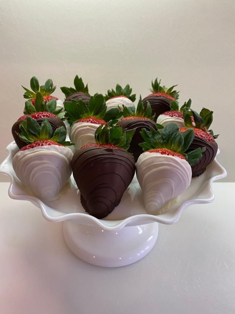 Strawberries are dipped in delicious 100 percent real milk, dark & white chocolate - never confection. Big, delicious and decadent, chocolate covered stemmed strawberries are pure bliss.